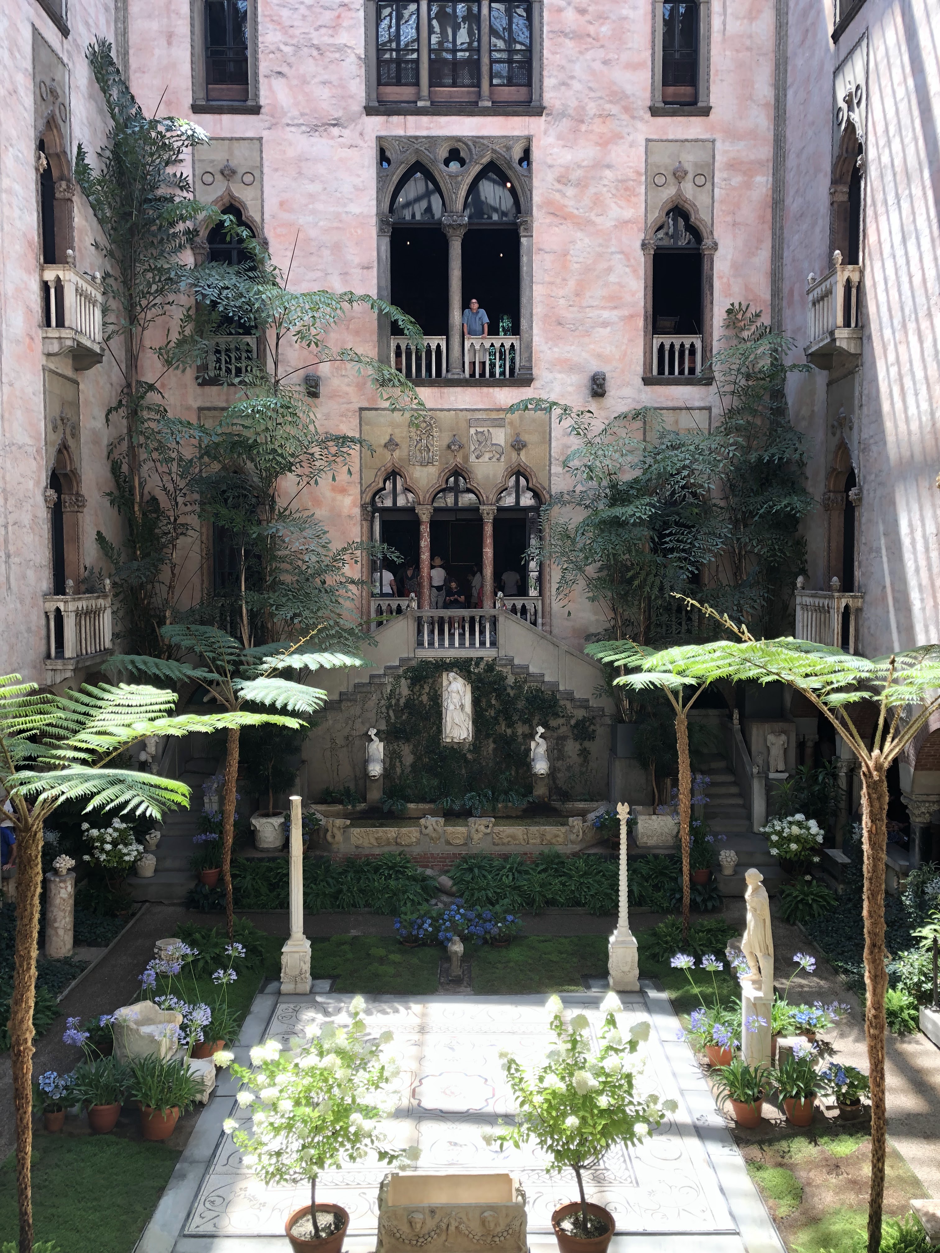 The Isabella Stuart Gardner Museum is located in the Back Bay neighborhood. The museum has a unique atmosphere as it was designed after a Venetian Palace. The galleries have a variety of types of art.